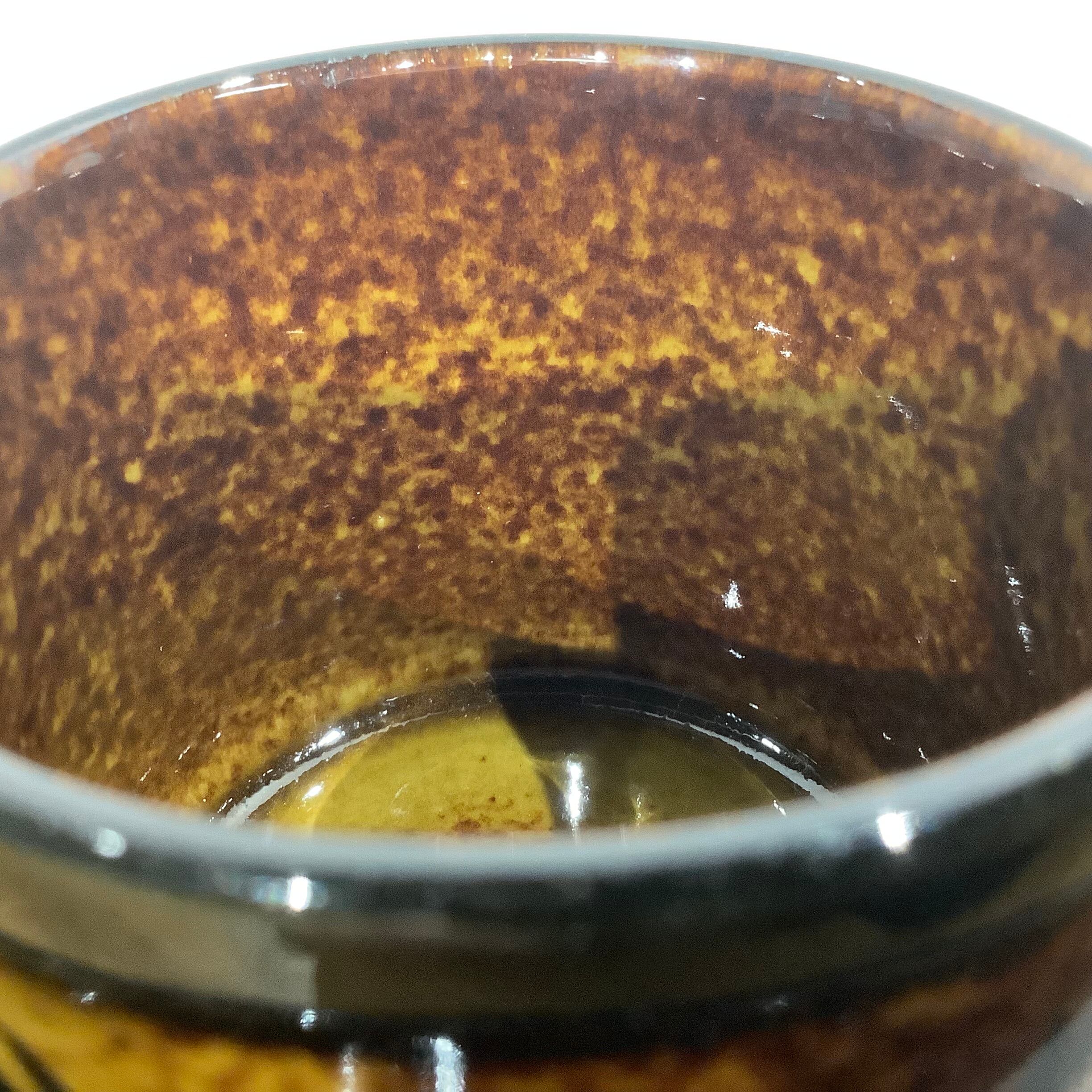 飴色の地に黒い花が大胆に描かれて、光沢のある仕上がりになっています。