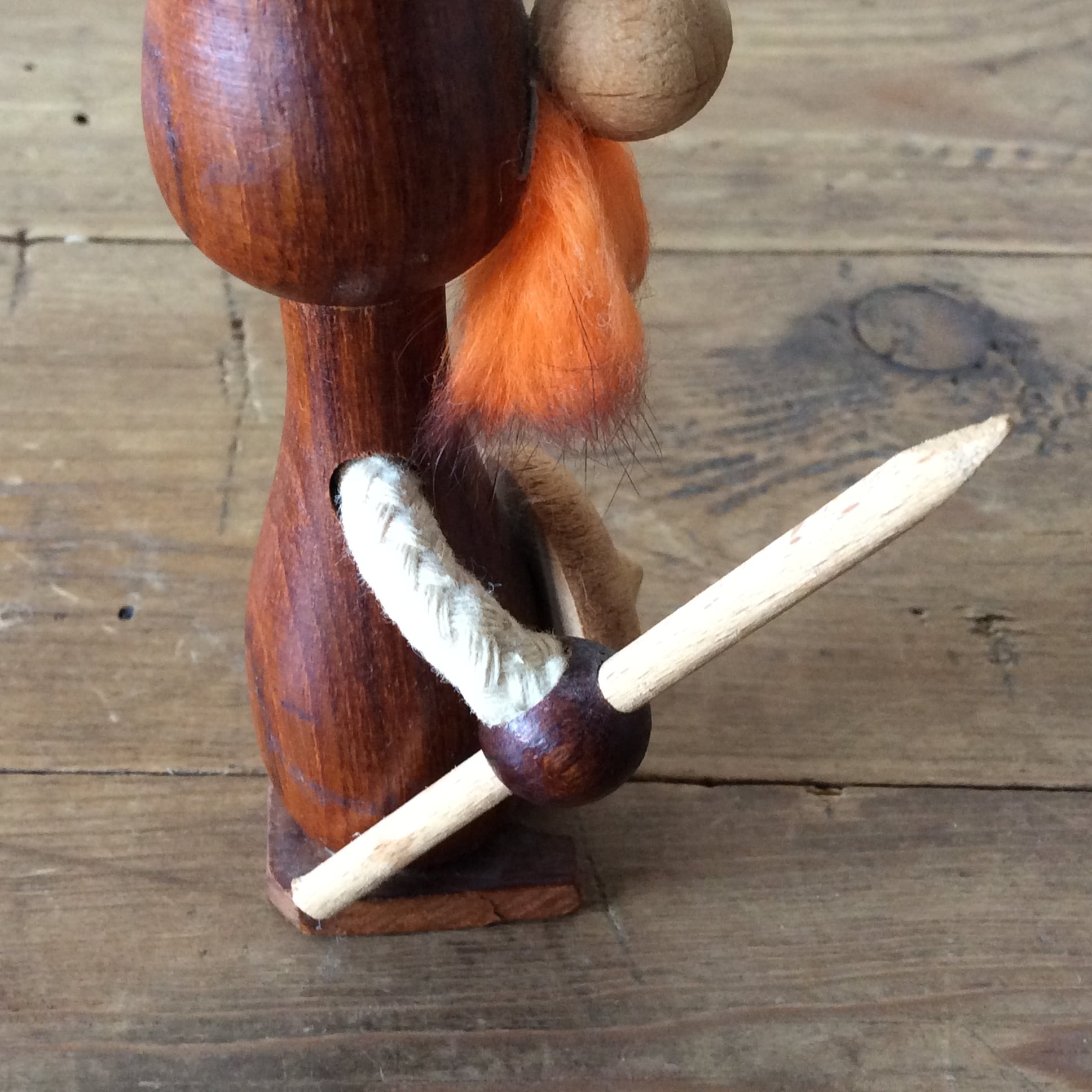 防衛対策をしたヴィンテージの木製のノギンス人形です。
