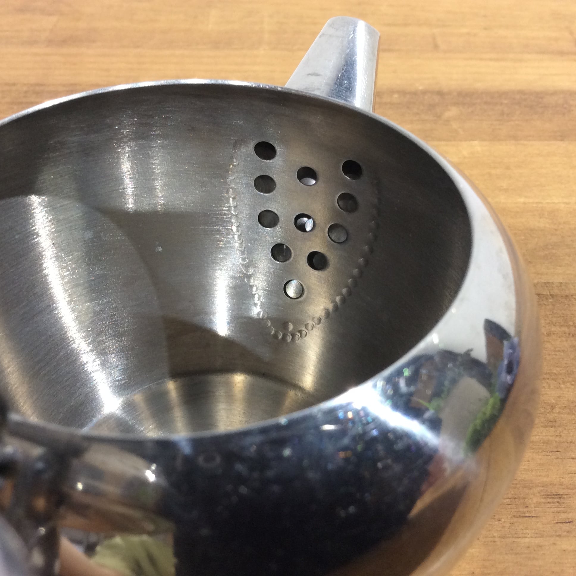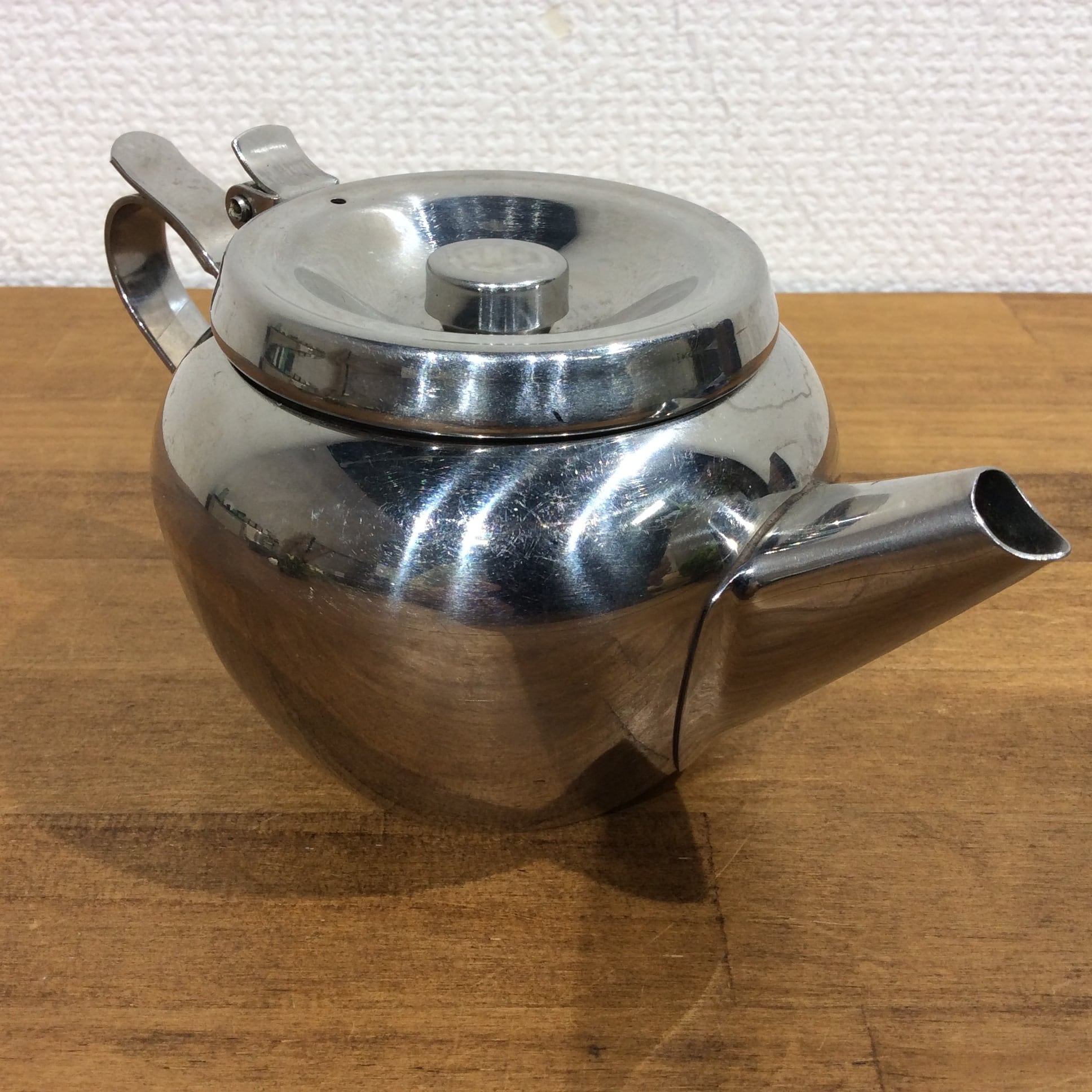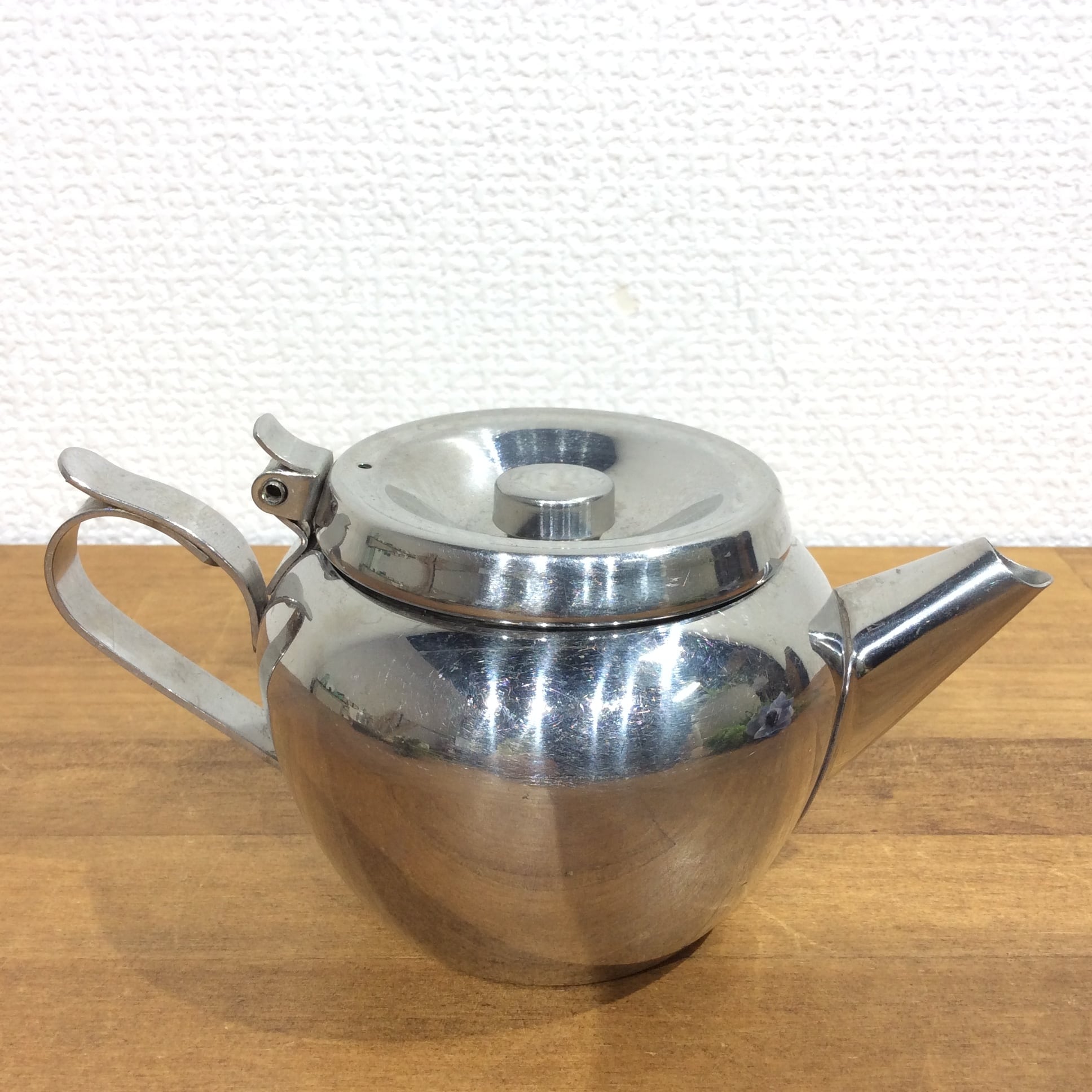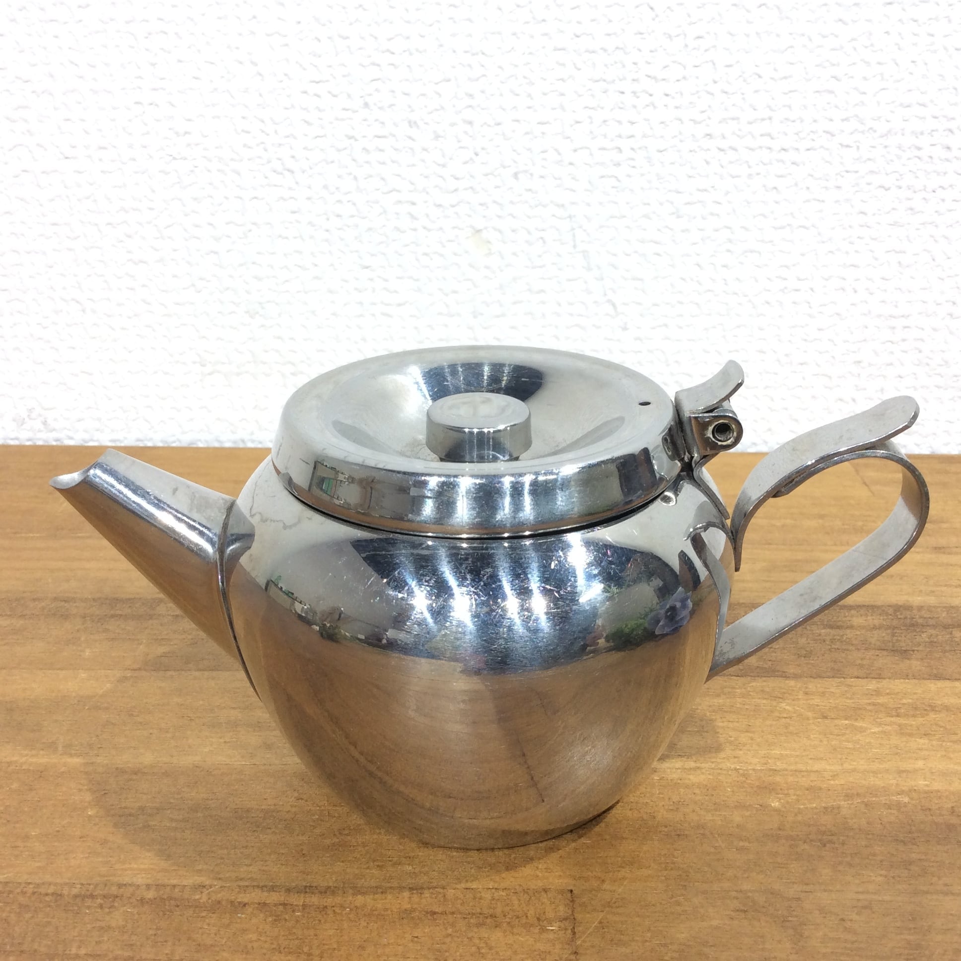 イギリスのマーケットで買い付けした、ステンレススチール製のティーポットです。